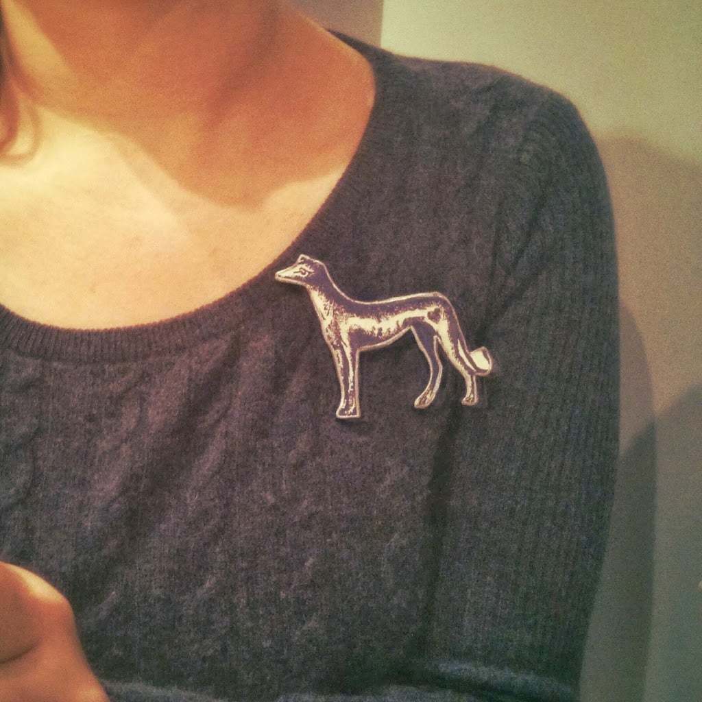 J’ai maudit Réjean quand il a décidé de laver mon pull sans prendre le soin d’enlever ma jolie broche en forme de lévrier. Heureusement pour lui, j’ai pu trouver son jumeau Dawanda.