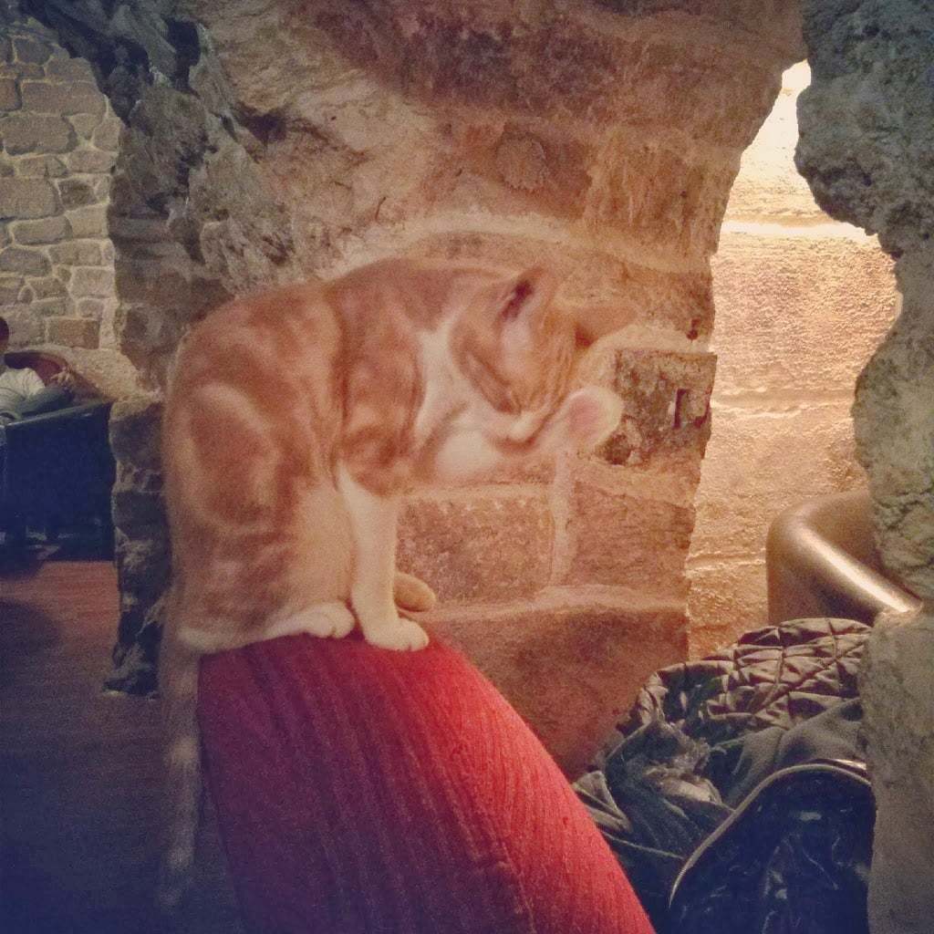 J’ai trouvé ça très mignon par contre on n’a pas trop eu de chance lors de notre visite parce que presque tous les chats dormaient et aucun n’est venu se faire caresser sur mes genoux. Au début nous avions été placés dans le fond de la cave mais c’était très humide et l’odeur était entêtante, finalement nous avons changé de place et c’était beaucoup mieux.