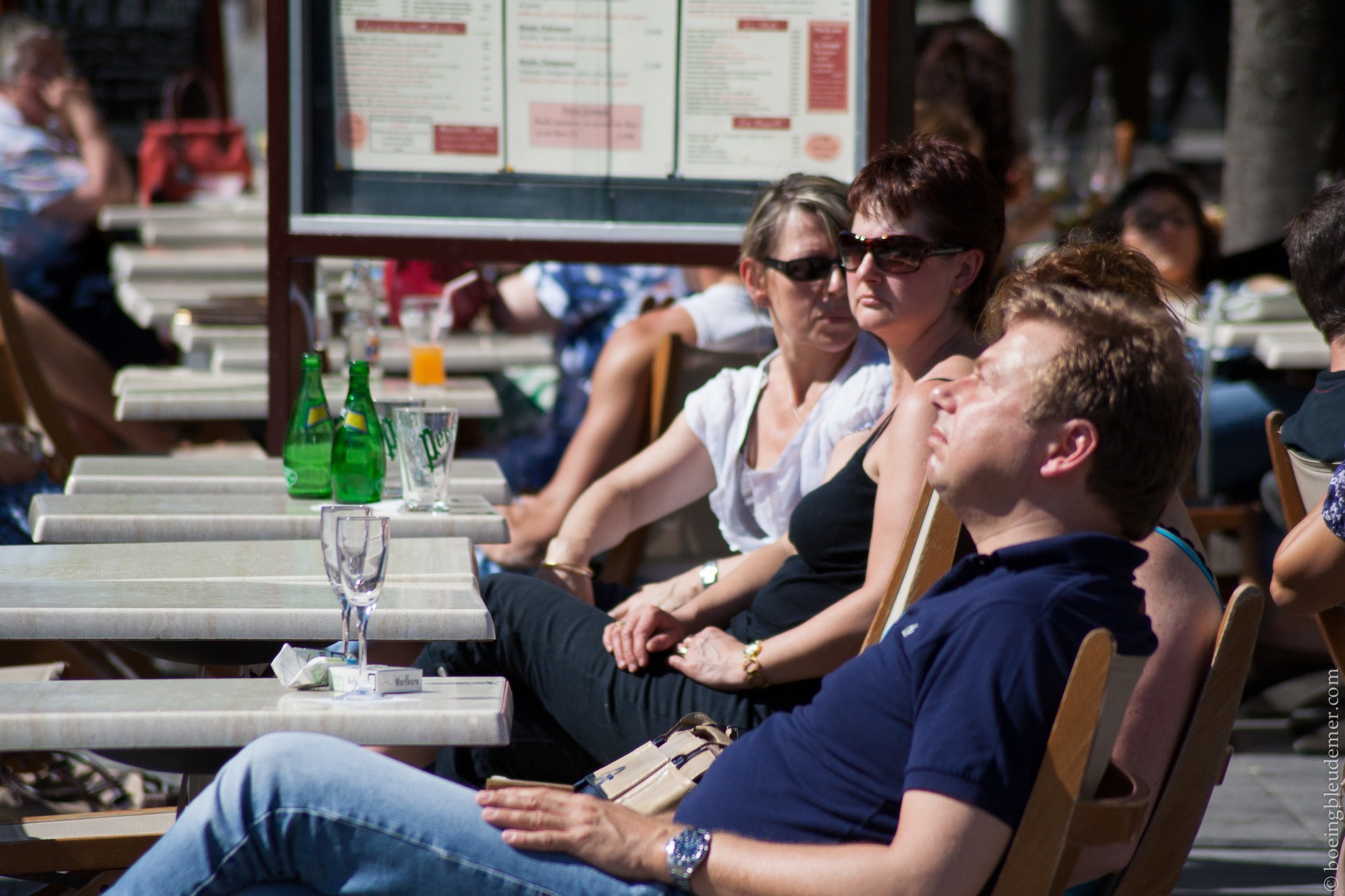 Histoire de les ramener sur le plancher des vaches on s’est assis en terrasse au café Gaulois pour siroter des boissons gazeuses. Tout allait bien sous le soleil, jusqu’à ce que G. commande une AUTRE bouteille de Champagne. Difficile de lui en vouloir car j’ai adoré cette bouteille de Brut Premier de Roederer. G. s’est mis à manquer de cigarettes, normal car chéri à qui j’interdis normalement de fumer lui avait piqué la moitié de son paquet. Avant qu’ils ne partent en quête d’un bureau de tabac ouvert le dimanche, je leur demande de bien vouloir me rapporter un peu de ma drogue : des bonbons.